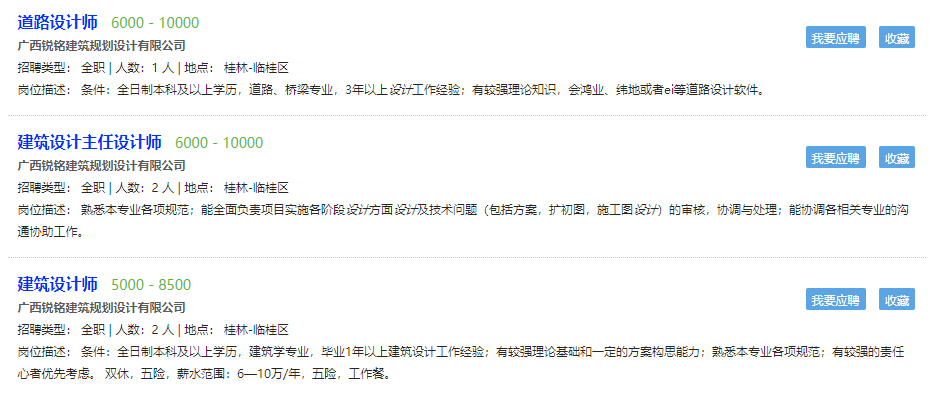 通过阅读这篇文章,相信大家对桂林鑫睿设计有限公司怎么样、广西一寸建筑设计有限公司怎么样和广西锐铭建筑规划设计有限公司怎么样也有了一定的了解,希望能帮助到大家呀!如果有想到桂林的设计公司工作的朋友可以试一试呀!更多桂林的招聘信息,大家可以自行到桂林人才网APP了解哦!