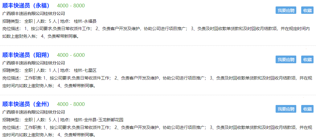 好啦,以上就是小编为大家介绍了有关桂林顺丰快递员薪资待遇和顺丰快递怎么样的内容,小编还补充了桂林快递发展的情况,希望能够对你有所帮助。桂林如今很重视对于交通运输的建设,从事快递行业的发展前景很好。那么如果想要了解更多招聘信息,请打开桂林人才网APP搜索相关职位哟,祝你能够找到自己心仪的工作。