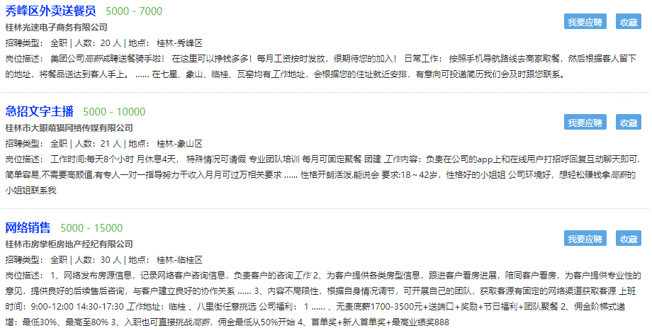 以下是小编找到的桂林高薪工作,有兴趣可以下载桂林人才网APP了解一下哦。