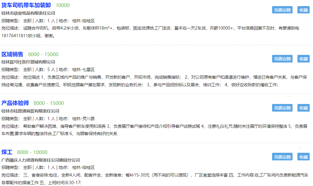 小编为大家整理了一些桂林有关工厂的职位信息,大家可以了解一下哦!