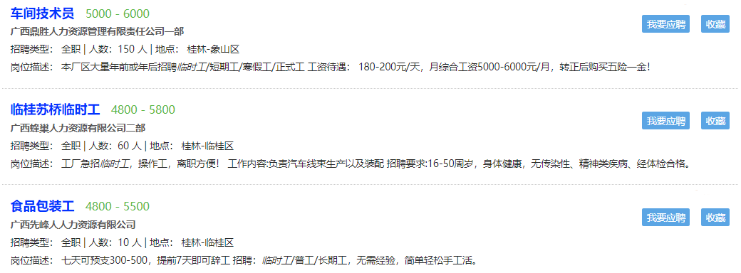 好啦,以上就是小编为大家介绍了桂林急招临时工200元一天的内容,希望能够对你有所帮助。小编觉得临时工可以自由调整工作和休闲时间,这是非常便利的,而且工作强度太大的时候,还可以方便休息。如果想要了解更多招聘信息,请打开桂林人才网APP搜索相关职位哟,祝你能够找到自己心仪的工作。