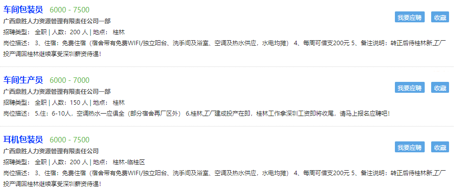 以上就是小编为大家介绍的全部内容啦!进厂是一种对于工作的选择,但是工厂也有很多的分类,不仅薪资待遇不一样,而且工作的强度也不一样。比如说电子厂相对一些制造厂或者加工厂就比较轻松一些,工厂内的环境也比较好。小伙伴们在选择工厂的时候,不仅要把薪资作为要求,而且也要注重工厂的合法性。感兴趣的小伙伴们可以下载桂林人才网APP来看看哟!