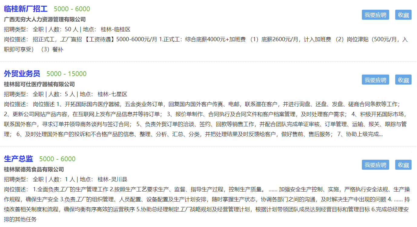 一、桂林工厂招工最新信息