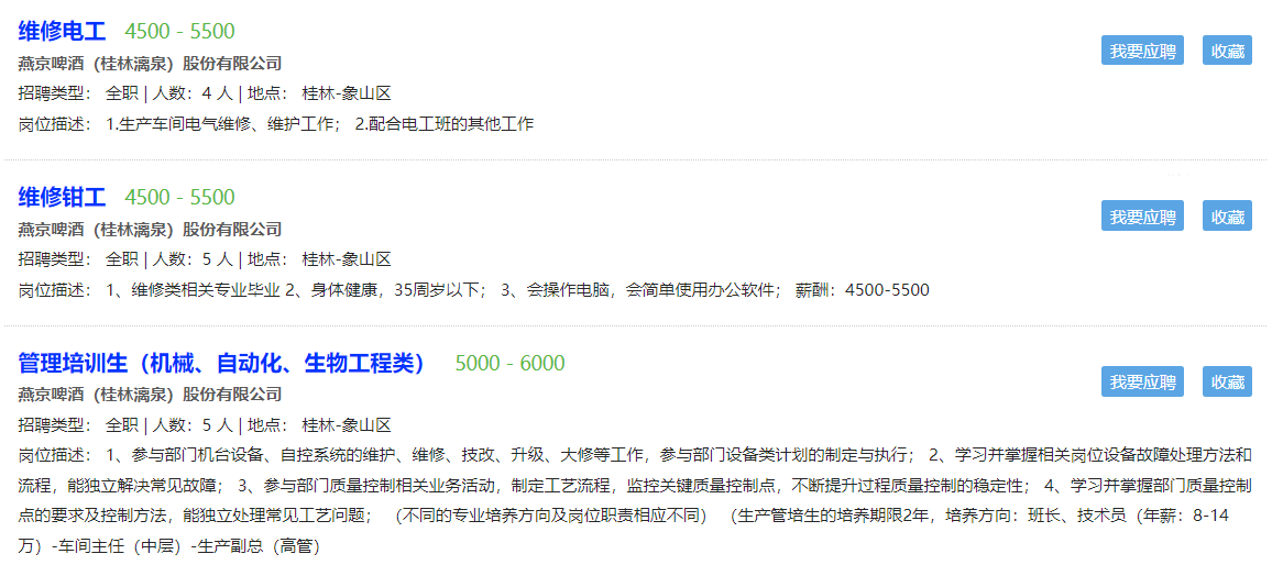 另外小编为大家找到了桂林人才网人才网上关于桂林啤酒厂正在招聘的工作,大家感兴趣可以点击图片了解详情。