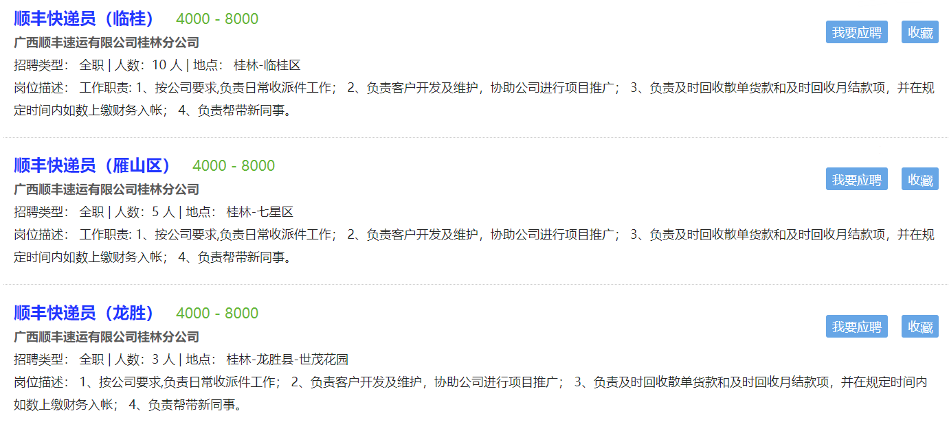以上就是小编收集整理的有关桂林市快递员薪资怎么样的全部内容,除此之外,小编还简单介绍了快递员的注意事项以及快递员发展前景,希望可以帮助到有需要的小伙伴。快递物流是十分迅速的,给我们带来了很好的购物体验,想要了解更多有关桂林市快递员的内容,欢迎访问桂林人才网APP。